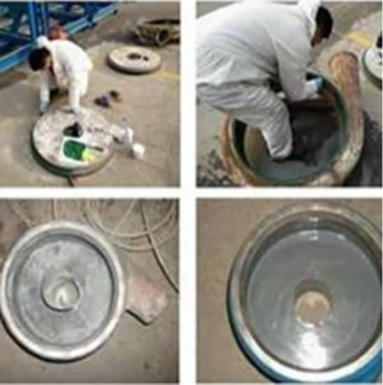 雙組分,以陶瓷顆粒及復(fù)合陶瓷顆粒、金屬碳化物為骨材與PDMG預(yù)聚體為基礎(chǔ)的耐磨復(fù)合材料,具有耐水、耐油、耐酸堿性。適用(-60℃-250℃)設(shè)備過流沖蝕、設(shè)備的大面積修復(fù)、設(shè)備預(yù)涂耐磨層,如旋流器、浮選柱、浮選機(jī)、泡沫槽、分級(jí)機(jī)、攪拌桶、溜槽、管件類、泵類等修復(fù)(典型用途見主要物理機(jī)械性能表)。