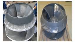 雙組分,以特種金屬碳化物、納米復(fù)合超硬顆粒為骨材、DNI-PDMG預(yù)聚體為基礎(chǔ)的耐磨復(fù)合材料,具有超強(qiáng)耐磨性、柔韌性、耐水、耐油、耐酸堿性。適用(-60℃-250℃)惡略環(huán)境中設(shè)備過流沖蝕(顆粒大于50mm)、設(shè)備的局部修復(fù)、設(shè)備預(yù)涂耐磨層,如旋流器、浮選柱、浮選機(jī)、泡沫槽、分級(jí)機(jī)、攪拌桶、溜槽、管件類、渣漿泵、脫硫泵、污水泵、往復(fù)泵、隔膜泵等泵類修復(fù)(典型用途見主要物理機(jī)械性能表)。