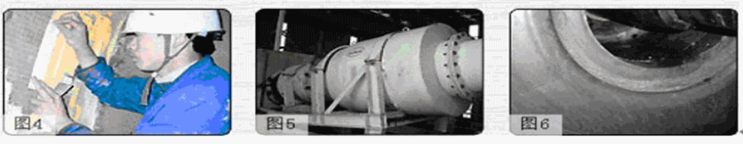 圖5: 汽輪機低壓缸立面泄漏修復:出廠前的低壓缸密封得很好,在長期運行中受冷熱膨脹應力影響使密封墊片產(chǎn)生一定殘余壓縮變形后造成泄漏,選用高溫修補劑及玻璃纖維加強帶可完全避免泄漏。