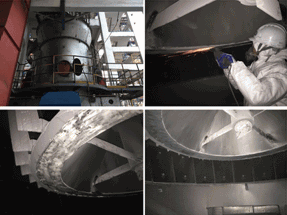 圖5: 鋼廠排風機因酸性蒸汽腐蝕嚴重,用耐腐蝕修補劑對其表面涂制保護層,取得極好的耐磨、防腐效果。