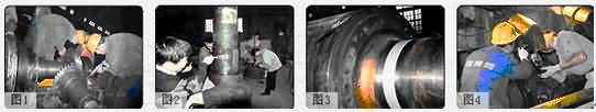 圖3: 軋鋼廠中厚板車間,軋輥長(zhǎng)期工作,工作軸頸(Ф500×1000)嚴(yán)重劃傷,已經(jīng)無(wú)法正使用。使用NPT系列設(shè)備專用修復(fù)劑進(jìn)行修復(fù)后繼續(xù)在高達(dá)數(shù)千噸的壓力下使用,為客戶節(jié)省了大量的資金
