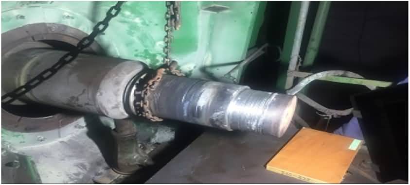 圖6: 龍門導(dǎo)軌磨床11米活塞桿有6米長發(fā)生劃傷, 采用減摩涂層進行修復(fù),既快又好又節(jié)約,已正常使用8