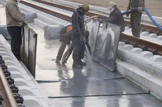 該工程分北京、廊坊、天津三段,六個(gè)梁場(chǎng)同時(shí)施工。全線做防水處理的面積超過