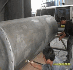 ①.先預(yù)熱已噴砂的設(shè)備,再將NPT-30耐磨修復(fù)材料按比例混合攪拌均勻,用批刀或塑料刮板將混合后的修復(fù)材料涂與設(shè)備整體面,朝一個(gè)方向涂抹,一邊涂抹一邊壓實(shí);