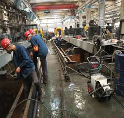 2. 物料、脫脂、除潮處理:用高壓清洗設(shè)備對浮選槽需修復(fù)部位進行清洗,去除設(shè)備表面的物料、鐵銹、污泥等雜質(zhì),并且應(yīng)無油污、無粉塵。