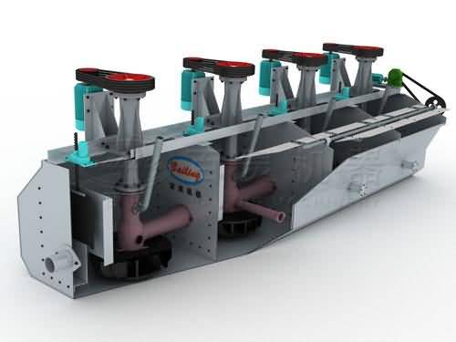浮選機(jī)適用于有色黑色金屬的選別,還可用于非金屬如:煤瑩石、滑石的選別。該浮選機(jī)由電動機(jī)三角帶傳動帶動葉輪旋轉(zhuǎn),產(chǎn)生離心作用形成負(fù)壓,一方面吸入充足的空氣與礦漿混合,一方面攪拌礦漿與藥物混合,同時細(xì)化泡沫,使礦物粘合泡沫之上,浮到礦漿面再形成礦化泡沫。調(diào)節(jié)閘板高度,控制液面,使有用泡沫被刮板刮出。