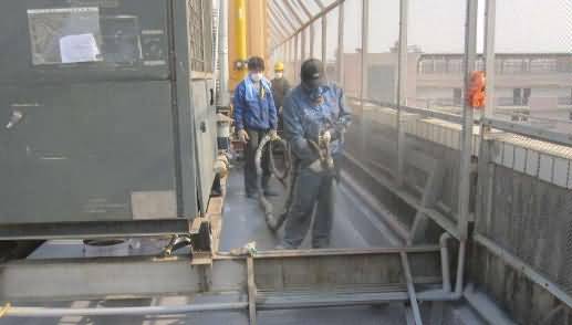 噴涂作業(yè)時(shí),操作員手持噴槍噴涂施工,噴槍宜垂直于待噴底層,距離適中,移動(dòng)速度均勻;噴涂次序?yàn)橄入y后易、先上后下,縱橫穿插噴涂至規(guī)劃要求的厚度,應(yīng)接連作業(yè),一般人工噴涂2遍能到達(dá)1.5厚。噴涂作業(yè)時(shí),如發(fā)現(xiàn)異常情況,應(yīng)立即中止作業(yè),查看并排除故障后方可持續(xù)施工。