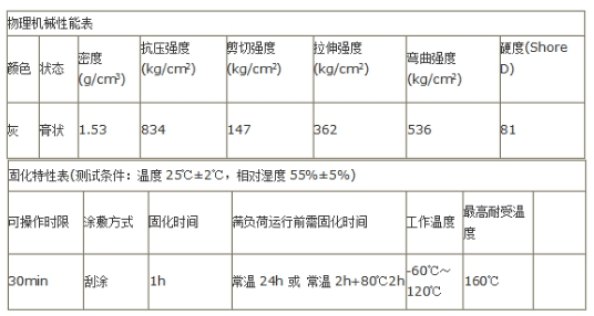 主要用于缺陷大于2mm的箱體裂紋、鑄造氣孔、砂眼、縮孔的填補、管件漏油、水汽的密封,可在低溫情況下施工。