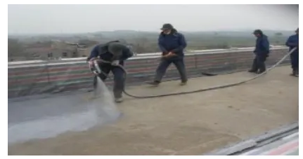 4、如果缺陷部位發(fā)現(xiàn)離噴涂時間較長(>6h),則應(yīng)對缺陷涂層表面(向外擴(kuò)展5-10cm范圍)打磨清理后,施作專門的處理劑,然后采用專用修補設(shè)備噴涂聚脲防水涂料并修補、刮平,使整個涂層連續(xù)、致密、均勻。