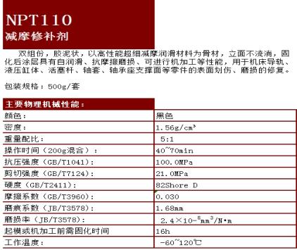 NPT-110減磨修補(bǔ)劑,其性能為: