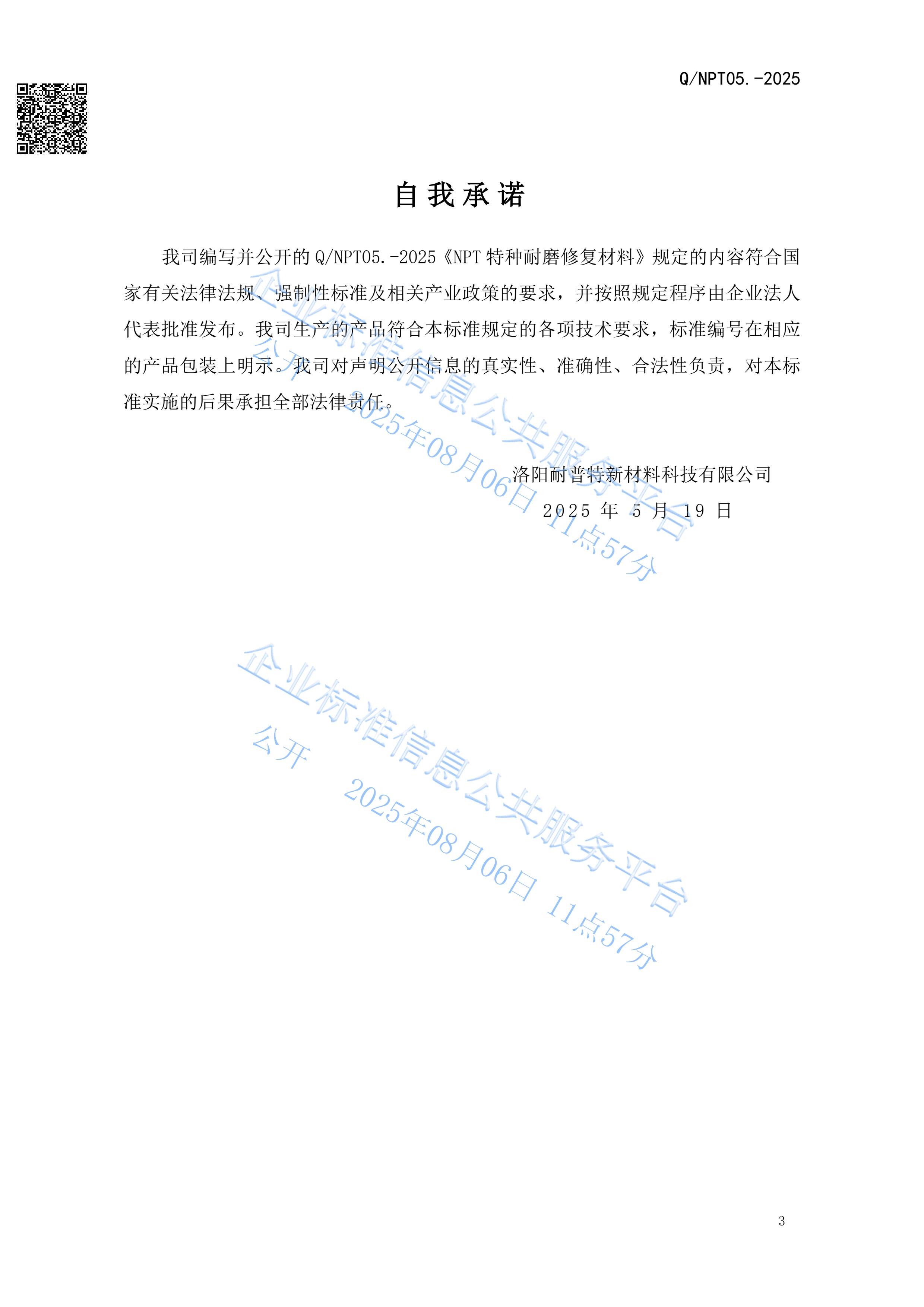 NPT特種耐磨修復材料企業(yè)發(fā)布標準